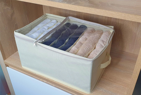 - Hộp không nắp đựng các quần áo thường xuyên sử dụng hay quần áo tối màu.